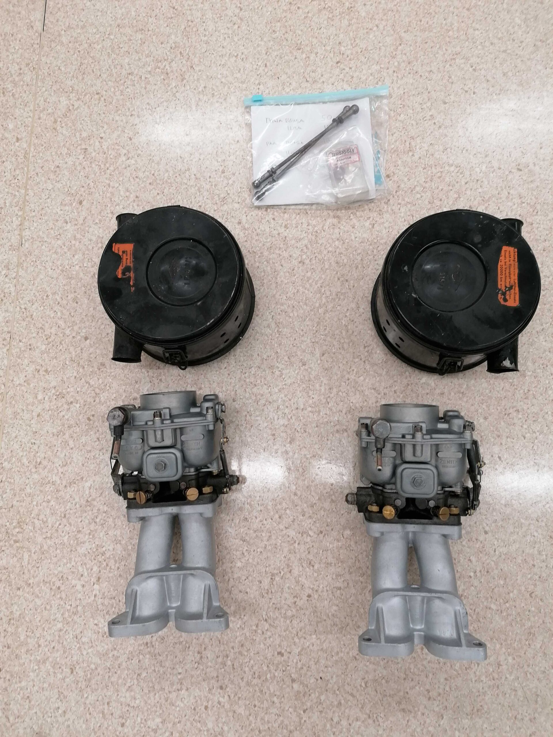 Porsche 356 Kaasuttimet Zenith 32 kunnostettuna ilmansuodattimet ei ole kunnostettu/ Porsche 356 carburetors Zenith 32 restoreited execpt airfilters
