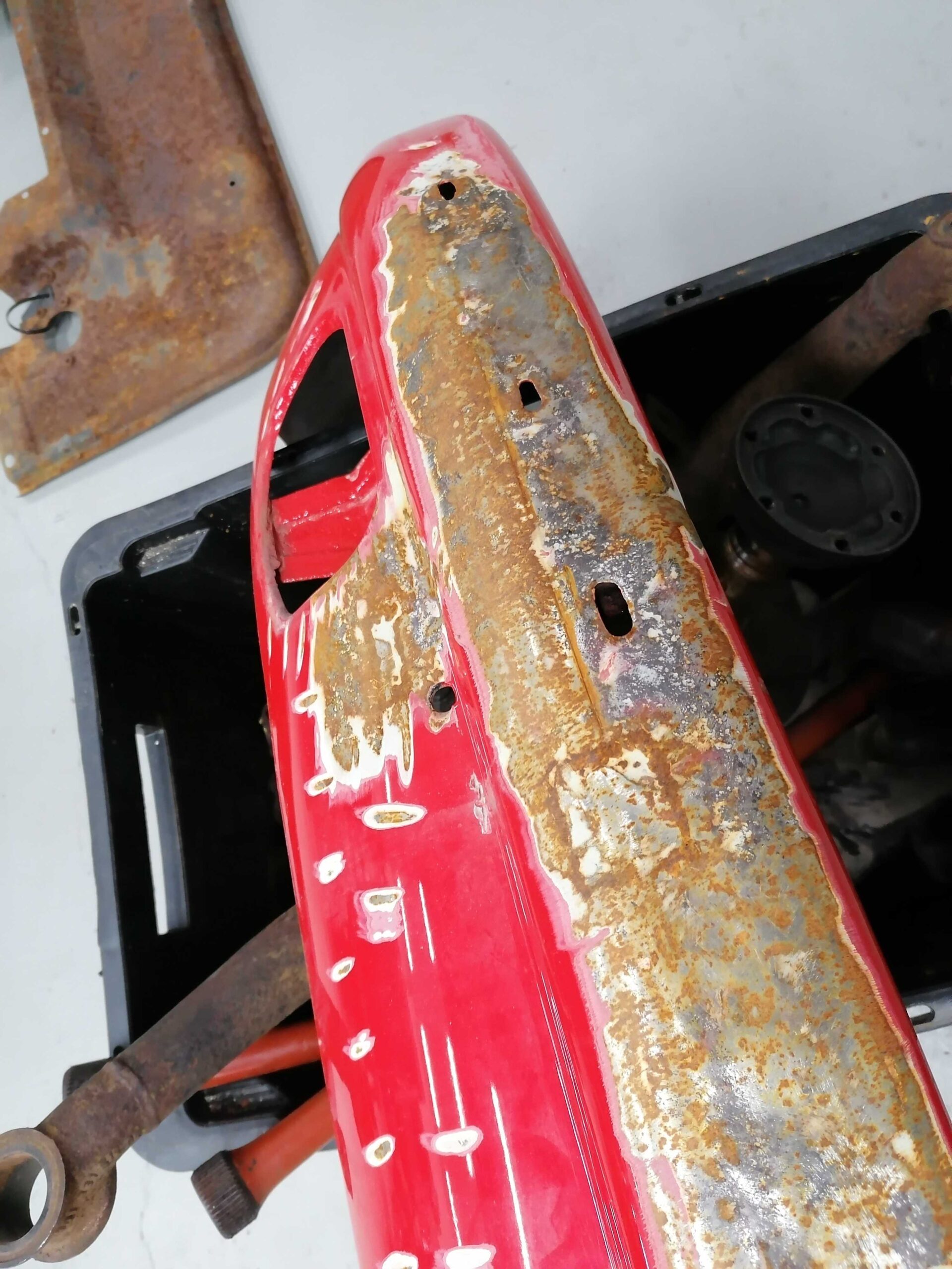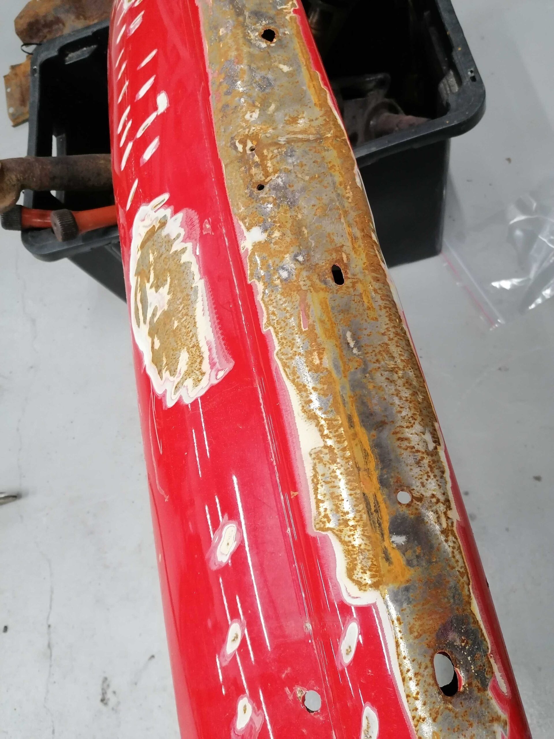 / Porsche 912 Etupuskuri muutama lommo etuosassa missä ei ole maalia / Porsche 912 Front bumper few dents in there where is no paint